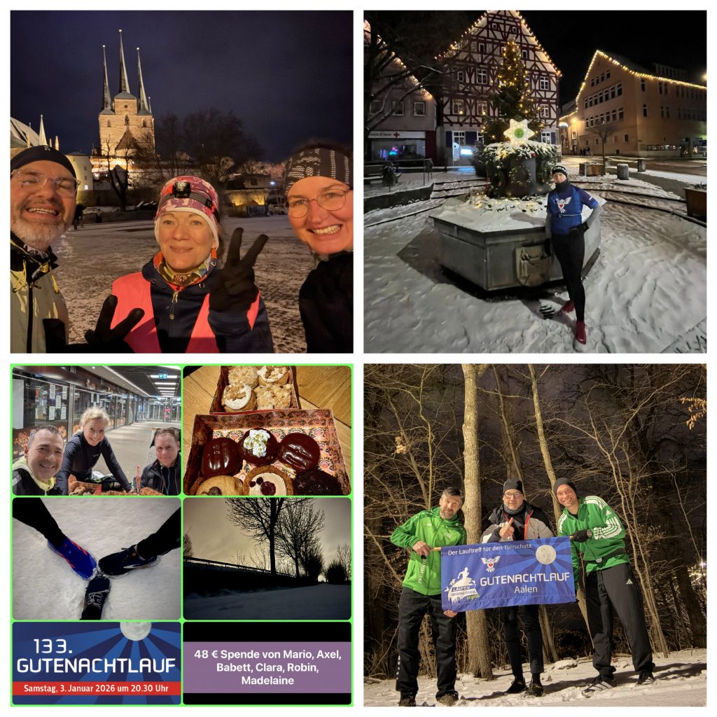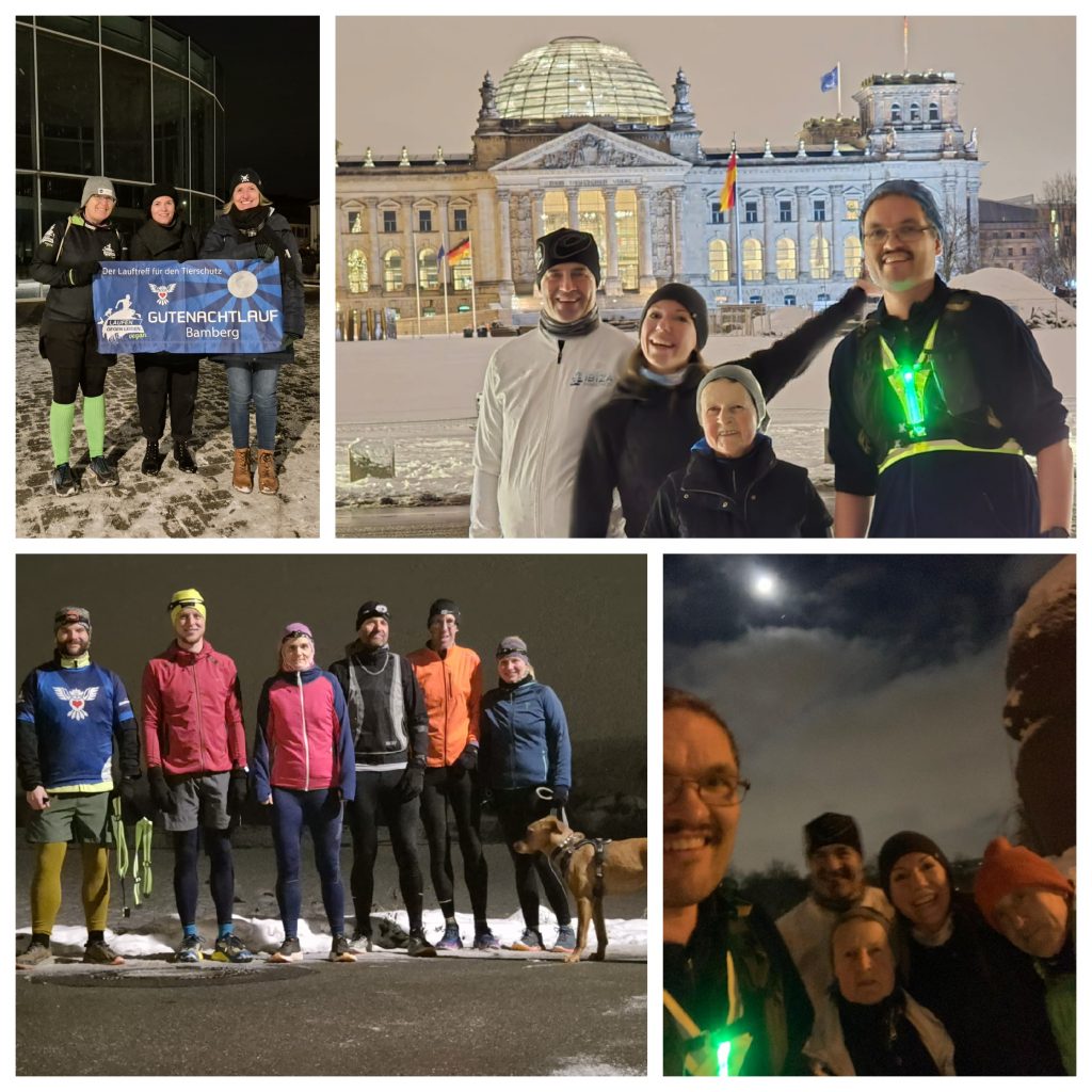 Unten seht ihr die Fotos der Städte, die am Gutenachtlauf teilgenommen haben. Diesmal konnten auch wieder Spenden für den gemeinnützigen Verein Laufen gegen Leiden e. V. erlaufen werden. Das gesammelte Geld geben wir, wie immer, zu 100 % an andere Tierschutzorganisationen weiter. Lieben Dank an alle Läufer:innen, die dabei waren. Wohin die Spenden gehen, könnt ihr hier einsehen.