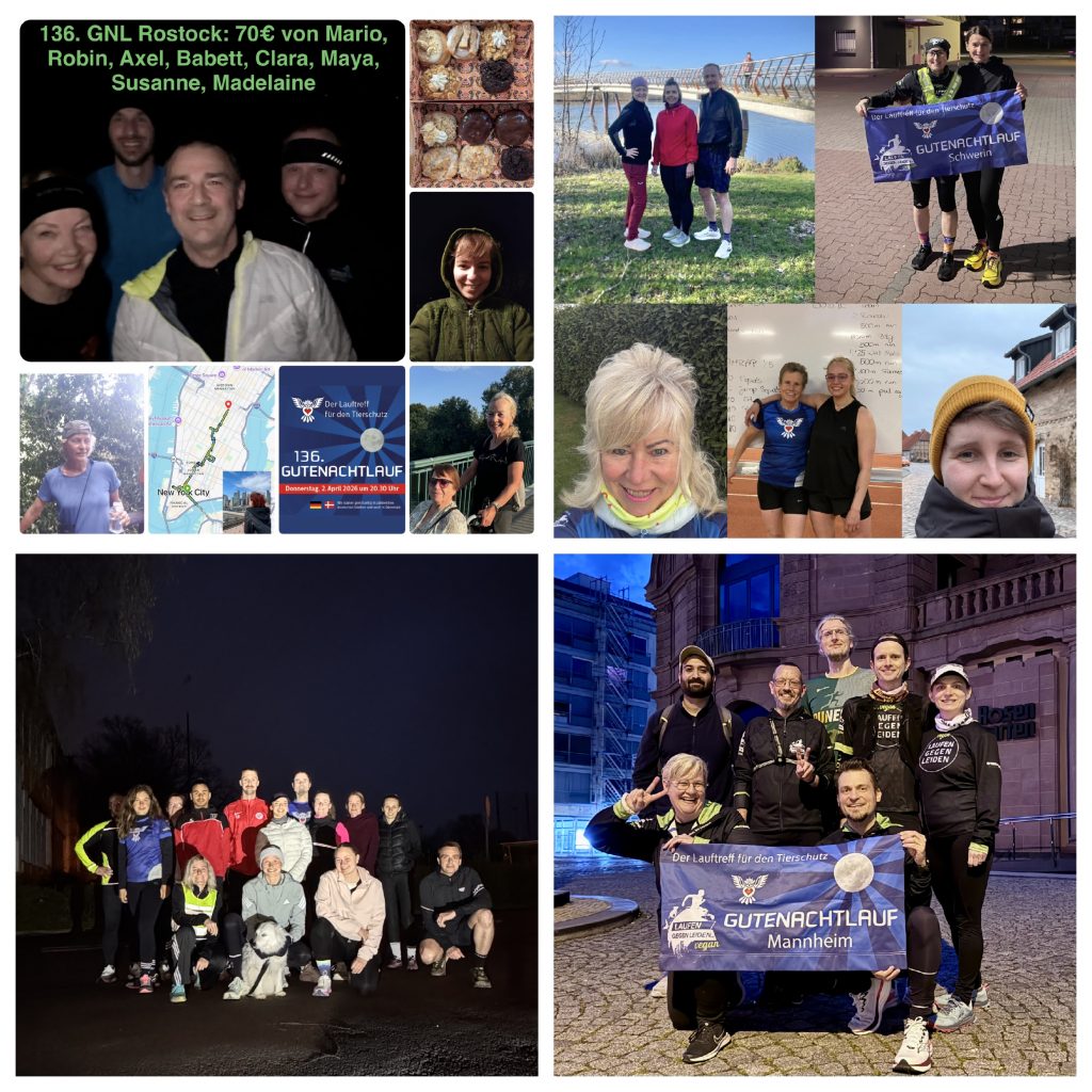 Unten seht ihr die Fotos der Städte, die am Gutenachtlauf teilgenommen haben. Diesmal konnten auch wieder Spenden für den gemeinnützigen Verein Laufen gegen Leiden e. V. erlaufen werden. Das gesammelte Geld geben wir, wie immer, zu 100 % an andere Tierschutzorganisationen weiter. Lieben Dank an alle Läufer:innen, die dabei waren. Wohin die Spenden gehen, könnt ihr hier einsehen.